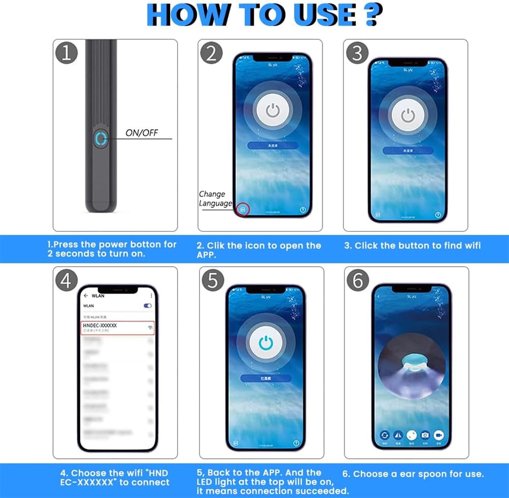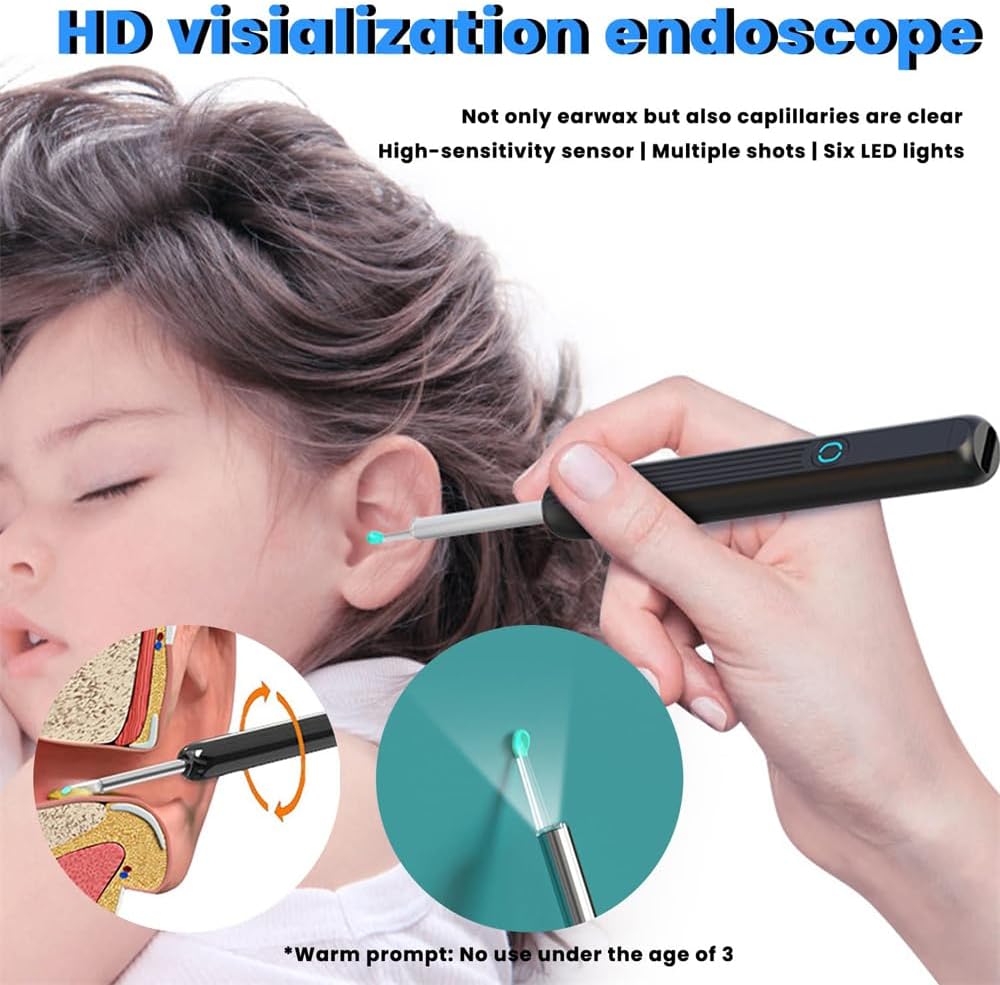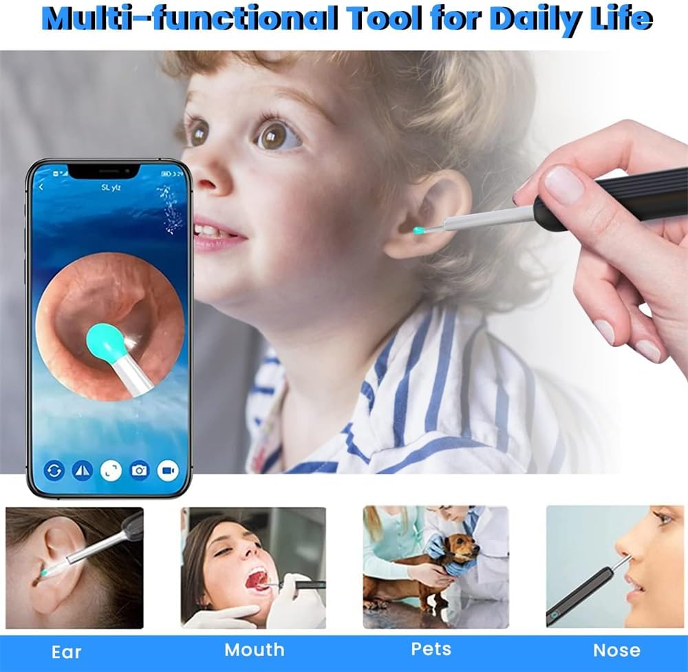 Ear wax removal is used as ear scoops or visual ear picker with HD camera, 360° wide-angle, 3-axis gyroscopes, 6 LED lights, provides smoother HD video images in real-time. Make earwax removal clearer, safer, and easy to check the health of ears, nose, throat, etc.