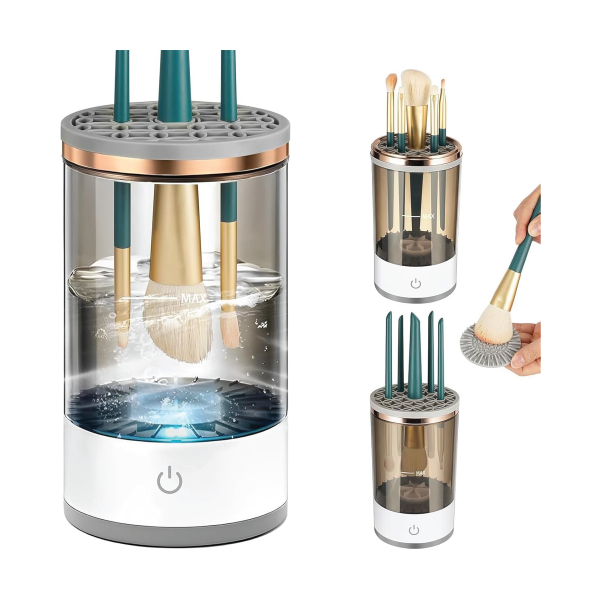 - With Its Sleek And Compact Design, Our Automatic Spinning Makeup Brush Cleaner Is Both Portable And Aesthetically Pleasing. It Will Effortlessly Blend Into Your Makeup Collection, Providing A Stylish Addition To Your Beauty Routine.