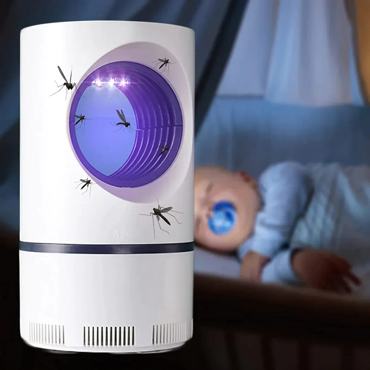 Using mosquito favorite 368nm ultraviolet mosquito trap lamp,360° light, and photocatalytic reaction produced by photocatalyst, release carbon dioxide and airflow to simulate the carbon dioxide damp atmosphere emitted by the human body. Attracts mosquitoes in any direction.