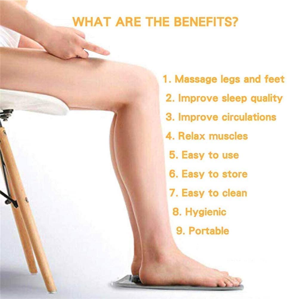The Foot Mat: With EMS technology, stimulate foot muscles through LOW-FREQUENCY ELECTRICAL PULSE TECHNOLOGY. Circulation Massager Machine can improve the blood circulation of the feet and legs, stimulate the nerves, reduce leg muscle weakness, calf cramps, and relieve the soreness and fatigue of the feet and calves.