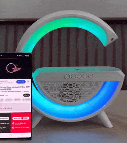This versatile 4-in-1 device combines a Bluetooth speaker, atmosphere lamp, wireless charger, and modern décor piece, all in a unique G-shape design.