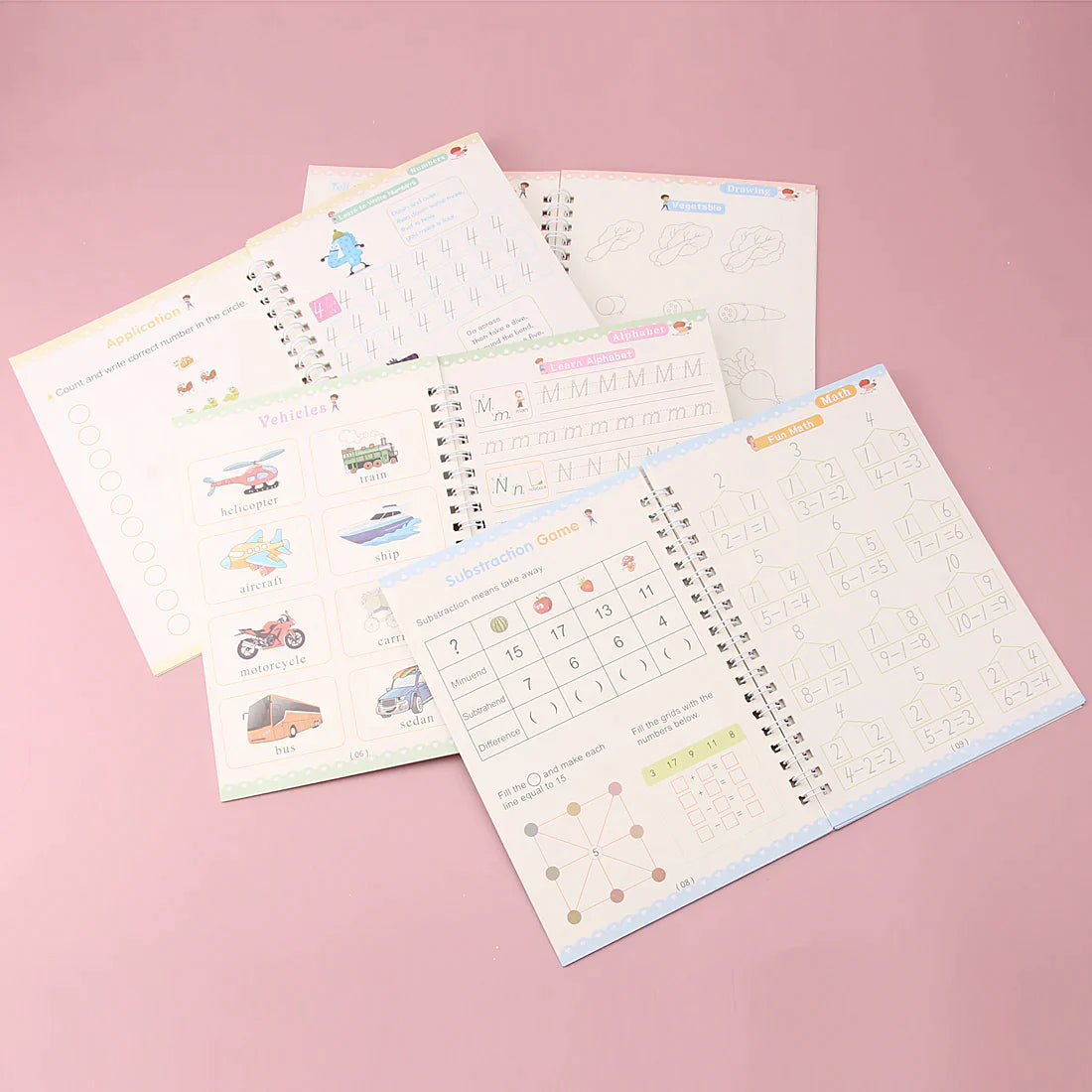 - Great Learning Gift for kids: These books include 26 English letters, 0-100 numbers, daily words, simple addition and subtraction, common shapes, colorful patterns and interesting animals and plants. Great learning books for kids,package including: 1x English + 1x Numbers + 1x Painting + 1x Math + 1x Fade Pen + 5x Refills + 1x Grip