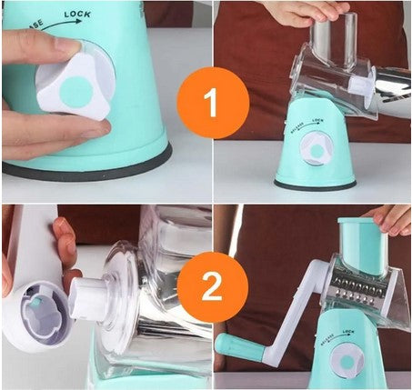 - Features: Manual rock, three-in-one vegetable cutter, equipped with 3 stainless steel barrel blades, a slicing blade, a coarse crushing blade and a fine crushing blade, practical.